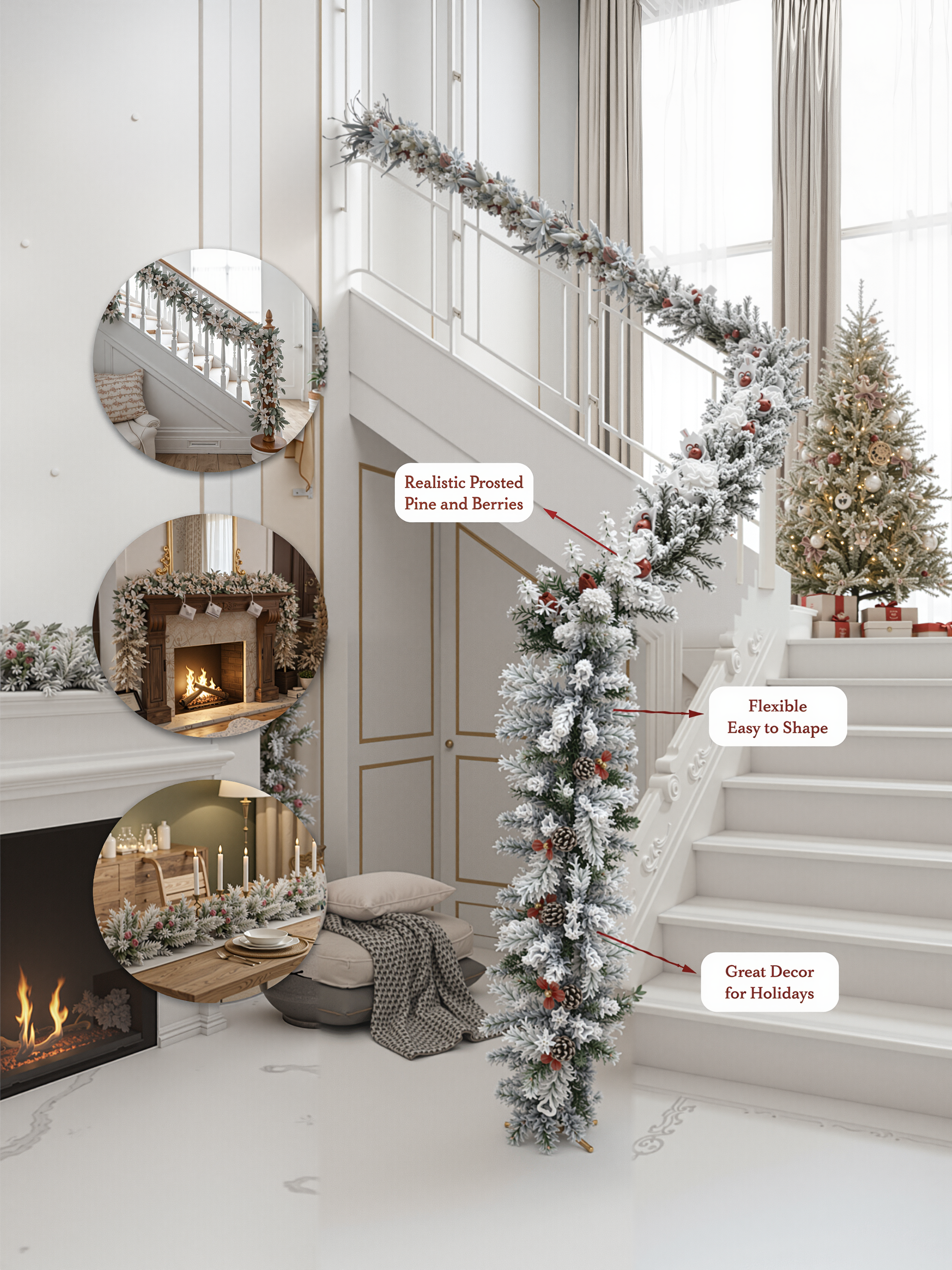 Amaranton™ White Frosted with Snow & Pinecones Garland - 79"