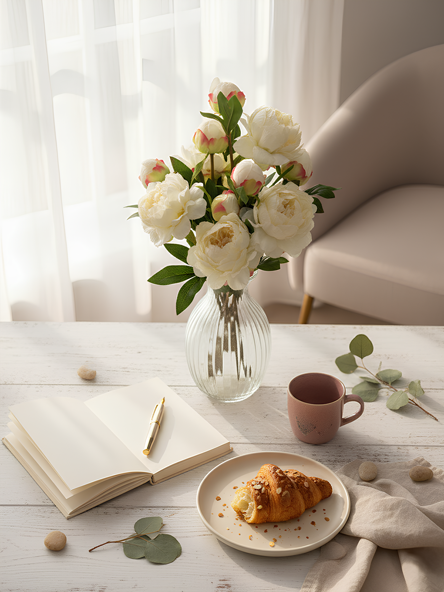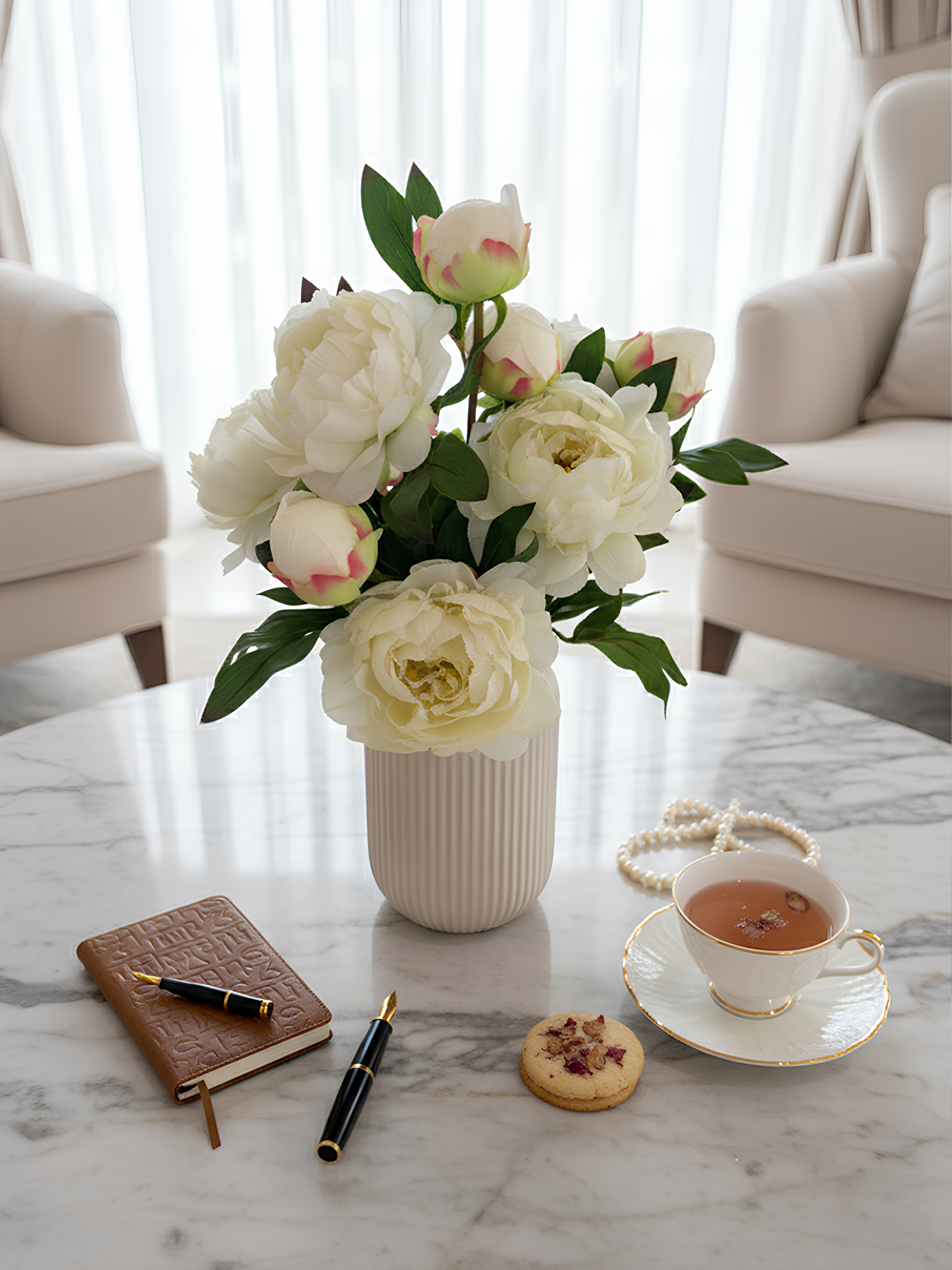 Amaranton™ 25" Realistica™ Peony with 1 Bloom and 1 Bud - White