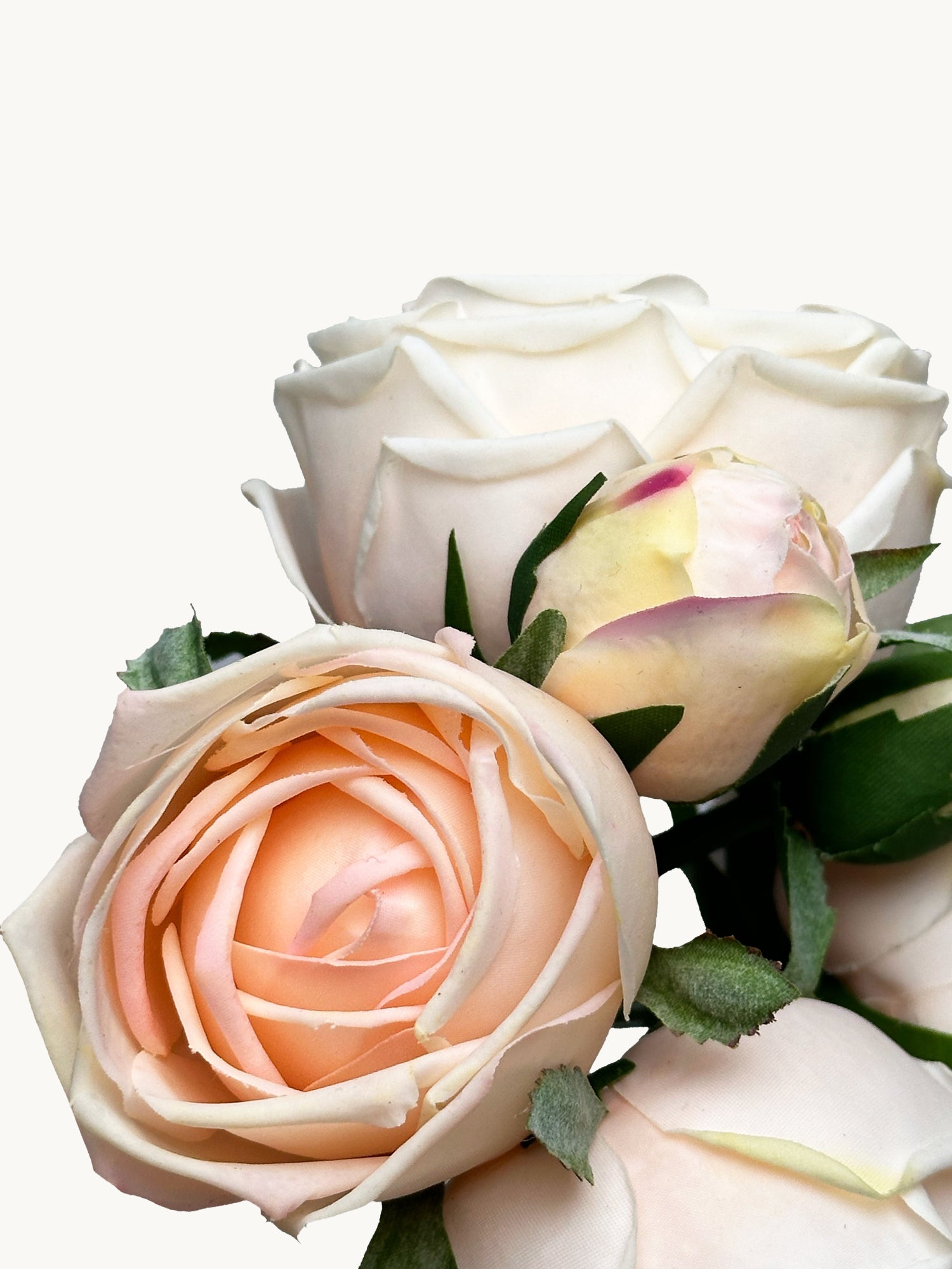 - Los pétalos de tacto real imitan la suavidad y las capas de las flores de rosas naturales.