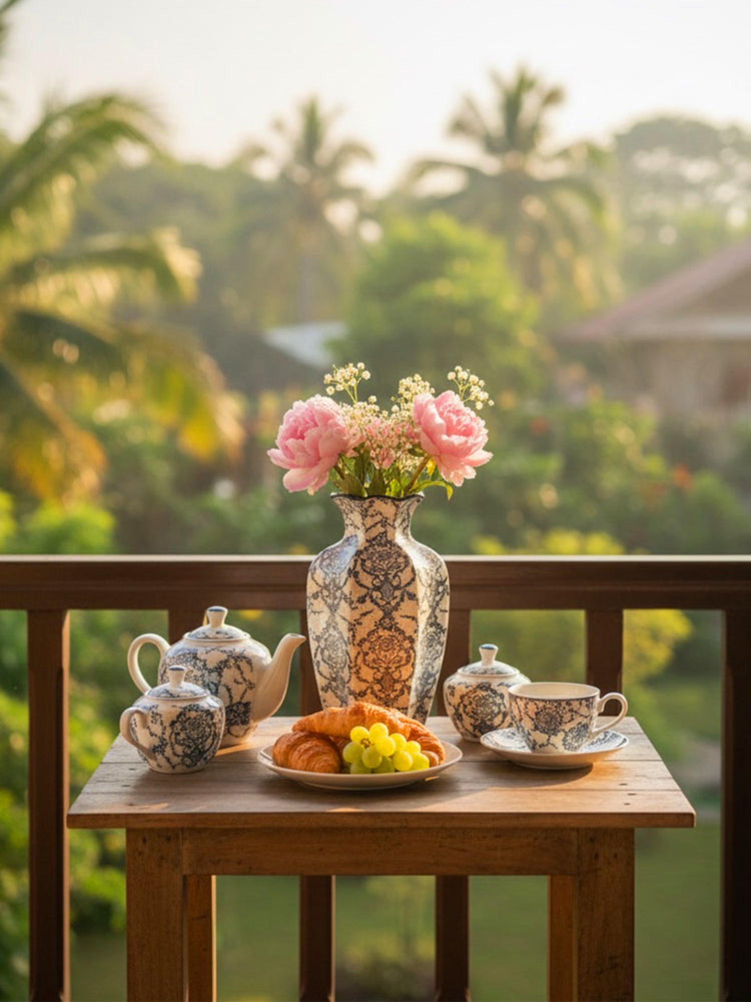 Jarrón Amaranton de 9" con balaustre festoneado chinoiserie azul