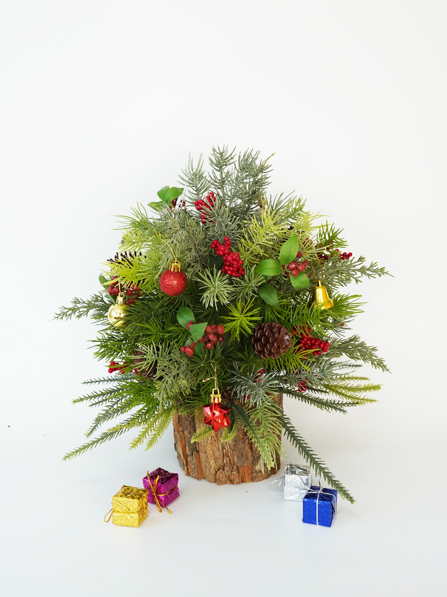 Create your own festive charm with our all-in-one desktop faux Christmas tree kit! This 35cm tall miniature tree comes pre-decorated with classic elements and includes extra ornaments for you to personalize.